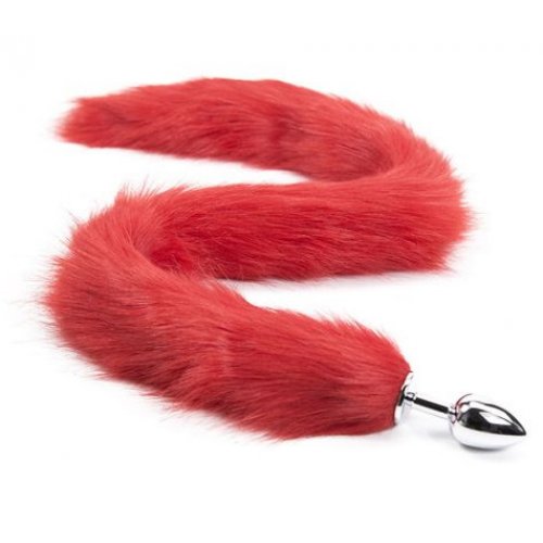 Металлическая анальная пробка S с длинным красным хвостиком 84 см