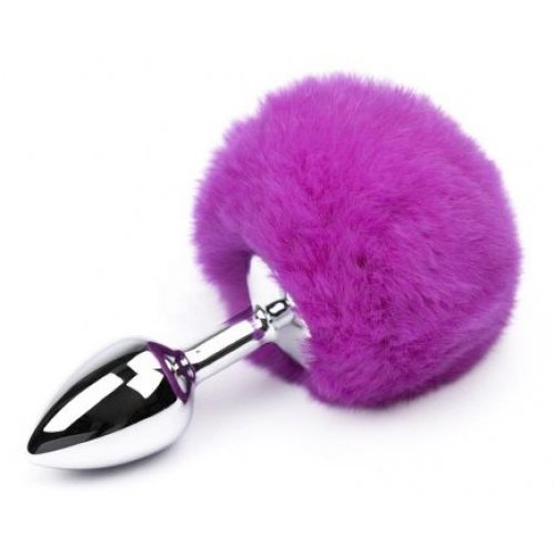 Анальная пробка из металла с фиолетовым хвостиком кролика