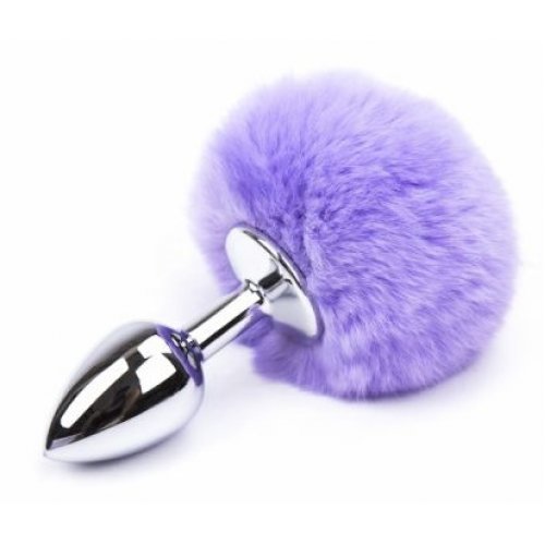 Анальная пробка из металла с сиреневым хвостиком кролика