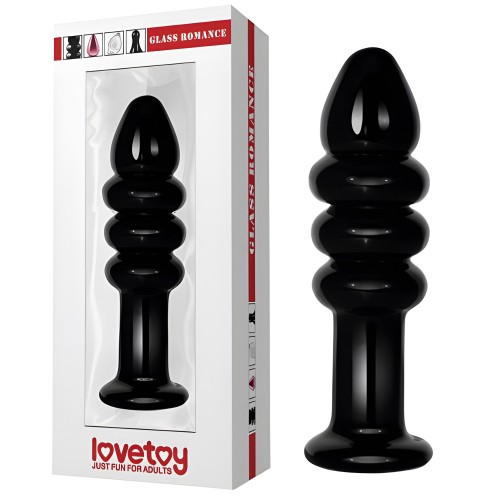Ребристая анальная пробка из черного стекла Glass Romance 14 см