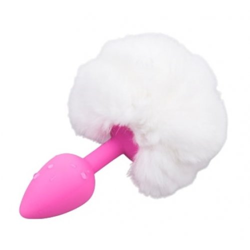 Розовая анальная пробка с белым хвостом