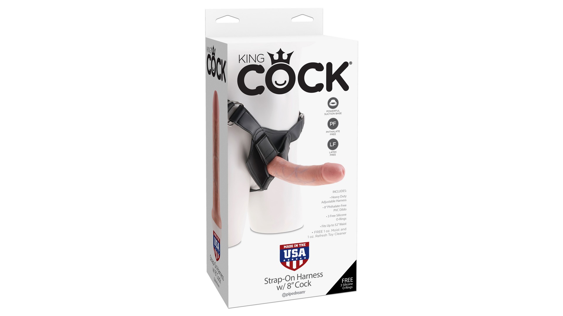 Размеры: длина страпона 20,3 см., диаметр 4,6 см., ремень регулируется до 132 см в талии, диаметр колец 5,4 и 3 см.