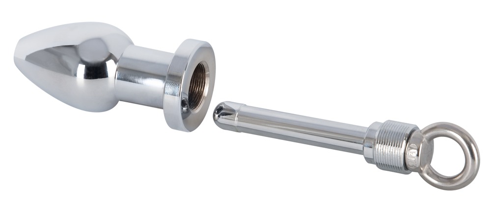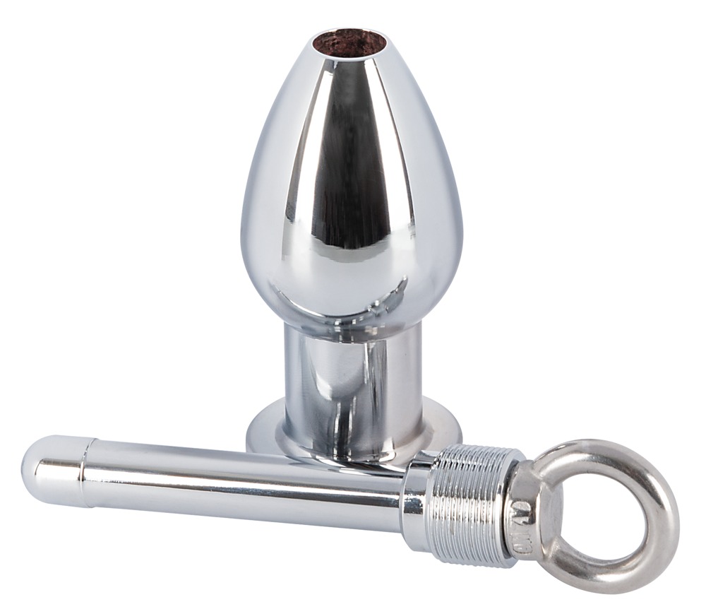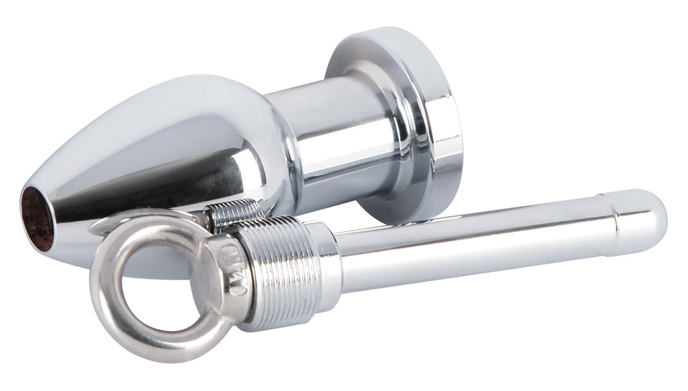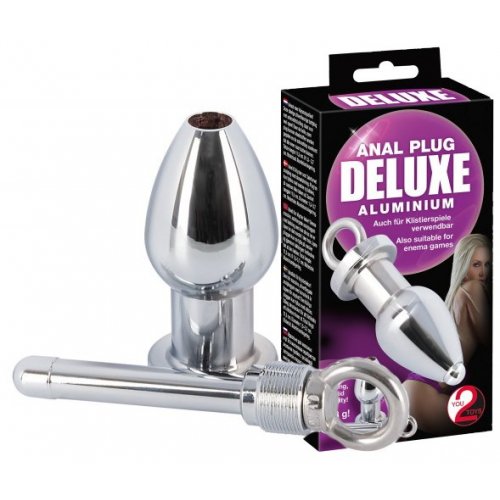 Массивная, серебристая и открытая анальная пробка Deluxe с винтовым замком!