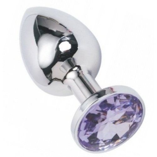 Металлическая анальная пробка с сиреневым камушком S