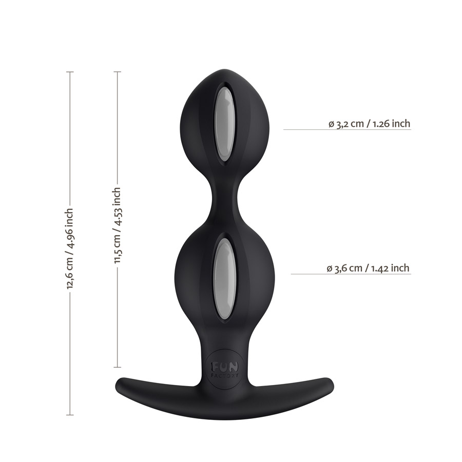Два утяжеленных шара, по одному внутри каждой круглой камеры, позволяют вам наслаждаться необычными ощущениями в отличие от того, что может предложить любая другая анальная пробка!