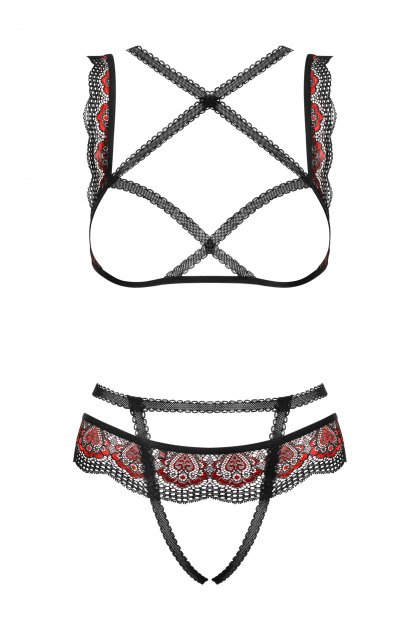 Комплект Obsessive - это любовь с первого прикосновения! Изготовлен из нежного кружева и эластичных резинок. Интригующе открытый бюстгальтер и соблазнительные трусики, создают невероятно сексуальный образ.