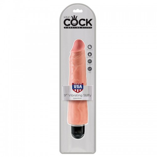 Вибратор-реалистик 9 Vibrating Stiffy выполнен из реалистичного на ощупь материала в естественном телесном цвете. Представляет собой дуэт классического вибратора с мультискоростной вибрацией, управляемой поворотом колёсика, и мягкой насадки с красивым рельефом поверхности. Ещё одно достоинство игрушки - водонепроницаемость пластикового корпуса, благодаря которой насладиться чувственными проникновениями можно и в душе.