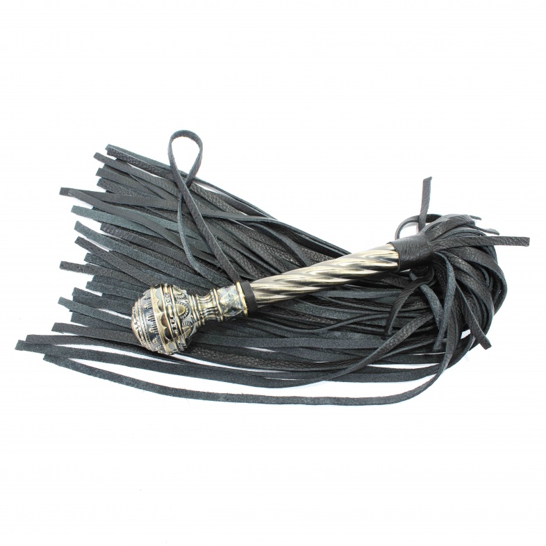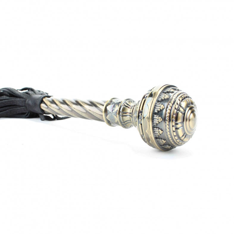 Витая рукоятка длиной 16 см. и диаметром 2,5 см. сделана из металла, сверху декорирована рельефным шаром диаметром 5 см.
