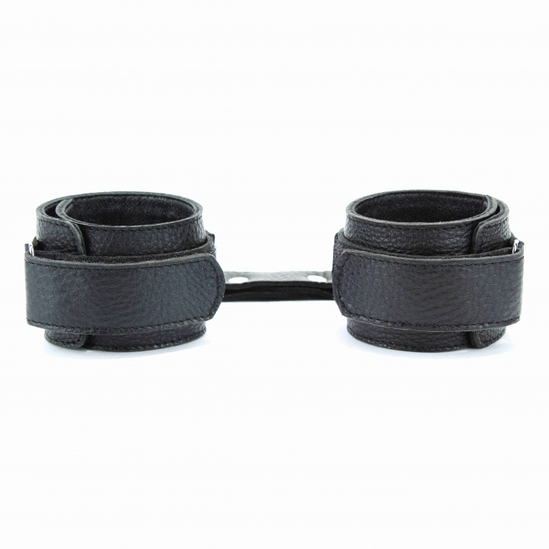 Оковы из натуральной кожи высокого качества. При производстве использована усиленная металлическая фурнитура. Подклад выполнен из нежной перчаточной кожи.Два металлических полукольца соединяются с помощью ремешка с карабинами, общая длина соединения 14см.Ширина оков 5см, ширина ремешков 3см.Фиксируются на ноге с помощью липучки, подойдут на обхват от 19 до 25см.