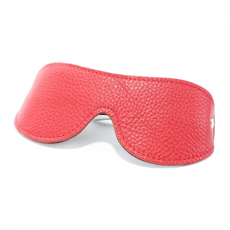 Маска из натуральной красной кожи. По бокам декорирована холнитенами, обеспечивающими дополнительную фиксацию резинки. Обратная сторона выполнена из черной гладкой кожи. Вы можете менять свой образ по вашему желанию. Благодаря эластичной резинке, размер универсальный, ширина резинки 2см.