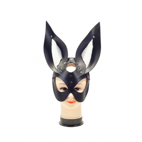 Супер-эффектная и сексуальная маска зайки выполнена маска из плотной черной кожи со вставками белого меха, она отлично держит форму.