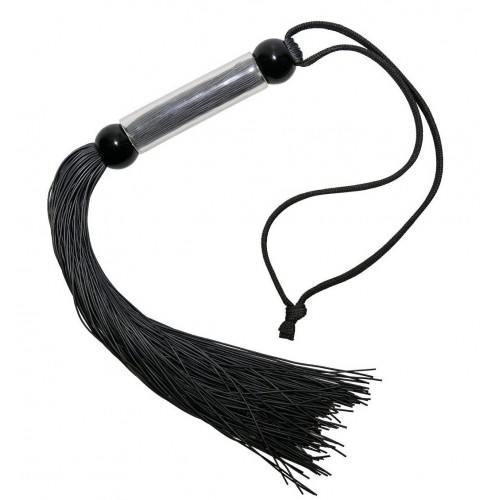 Плеть-флоггер черного цвета с резиновым хвостиком 51 см