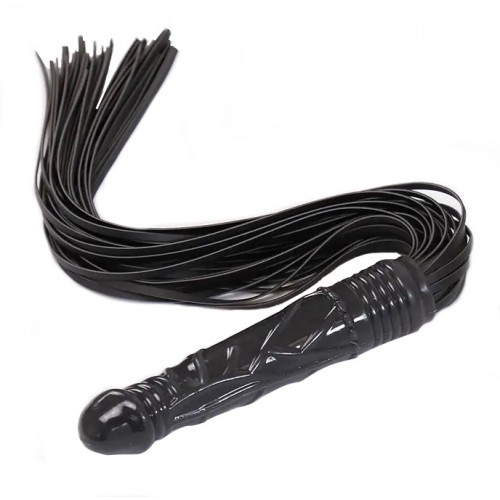 Черная БДСМ плеть с черным фаллосом 66 см