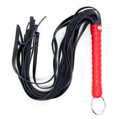 Черная плеть с красной рукоятью из натуральной кожи 65 см