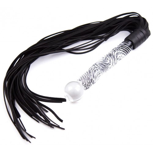 Замшевая плеть черного цвета с прозрачной рукоятью 68 см