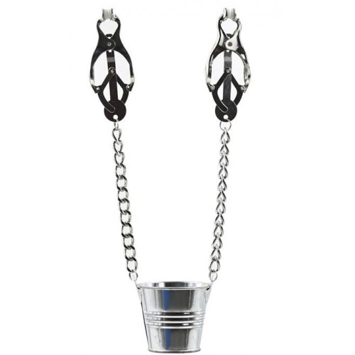 Ведерко, которое прикреплено цепями к зажимам, позволит расширить круг воплощаемых фантазий - Вы сможете положить в него дополнительные утяжелители, чтобы еще больше обострить ощущения.