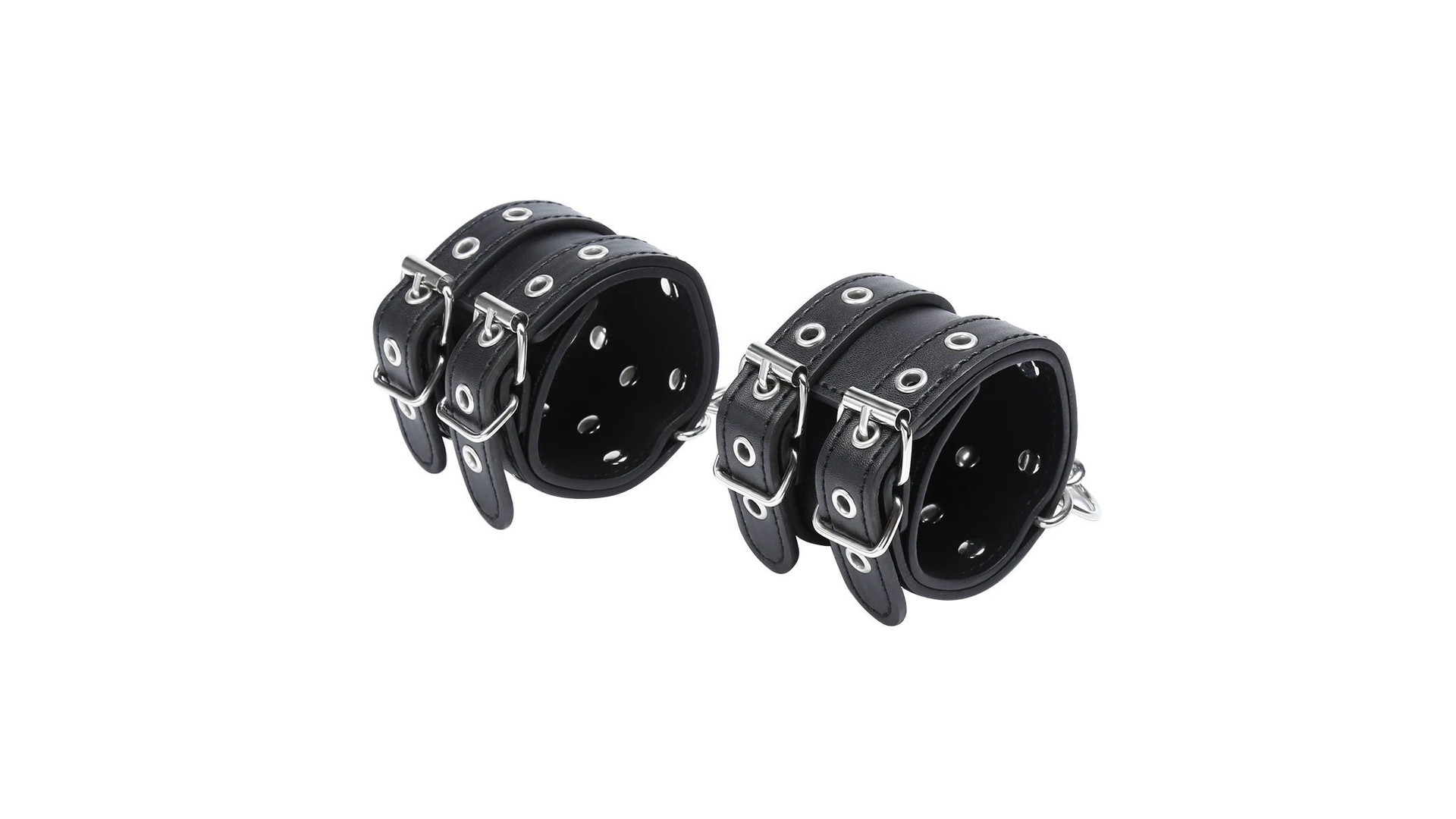 Металлическая фурнитура обеспечивает качественную фиксацию. Наручники соединяются между собой цепью с карабинами, благодаря чему обеспечивается достаточно жесткая сцепка.