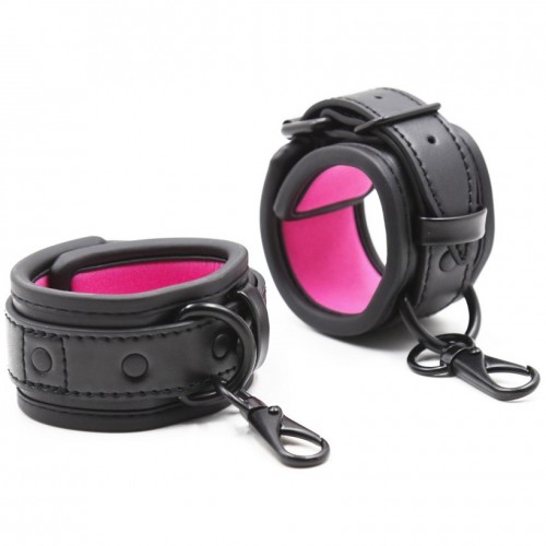 Матовые черно-розовые наручники на карабинах