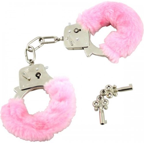 Ярко розовые металлические наручники с мехом