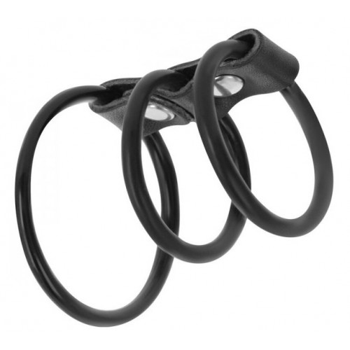 Черный фиксатор состоит из трех колец разного диаметра. Все края очень гладкие. Прекрасно удерживает пенис.