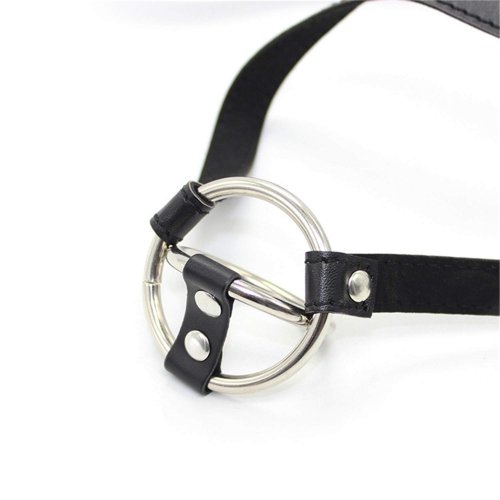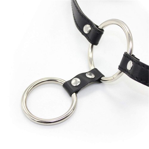 Фиксатор на пенис двумя металлическими кольцами и кожаным ремешком. Регулируемые ремни.