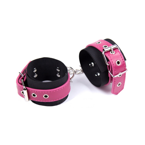 Мягкие универсальные черно-розовые оковы на цепочке с карабином