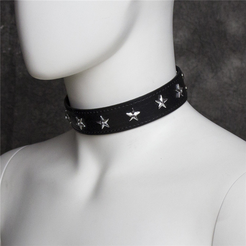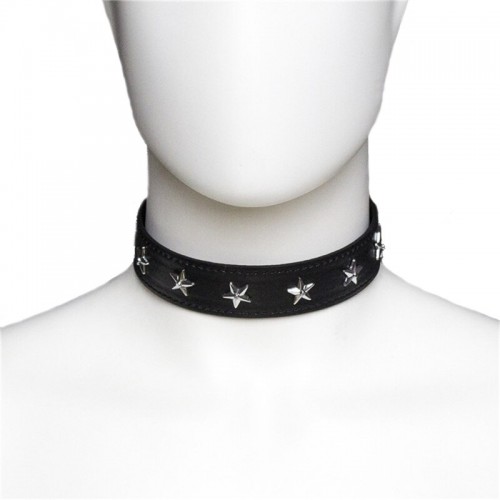 Оригинальный черный ошейник, декорированный металлическими звёздами.