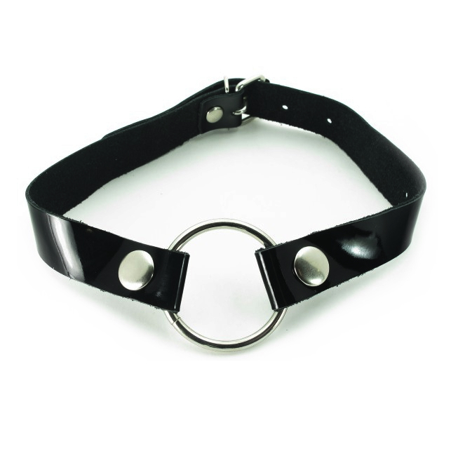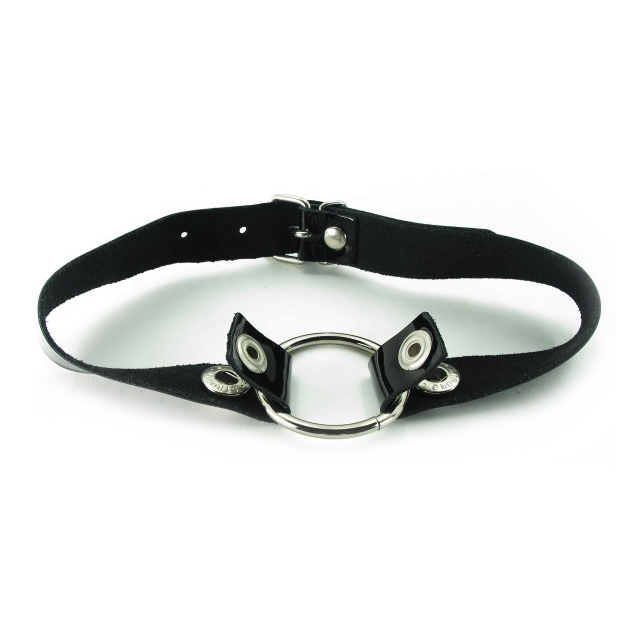 Кляп в виде открытого кольца на ремешке, изготовленном из качественной кожи (ширина ремня - 2 см).