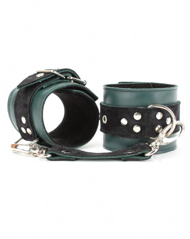 Оковы выполнены из натуральной кожи изумрудного цвета.