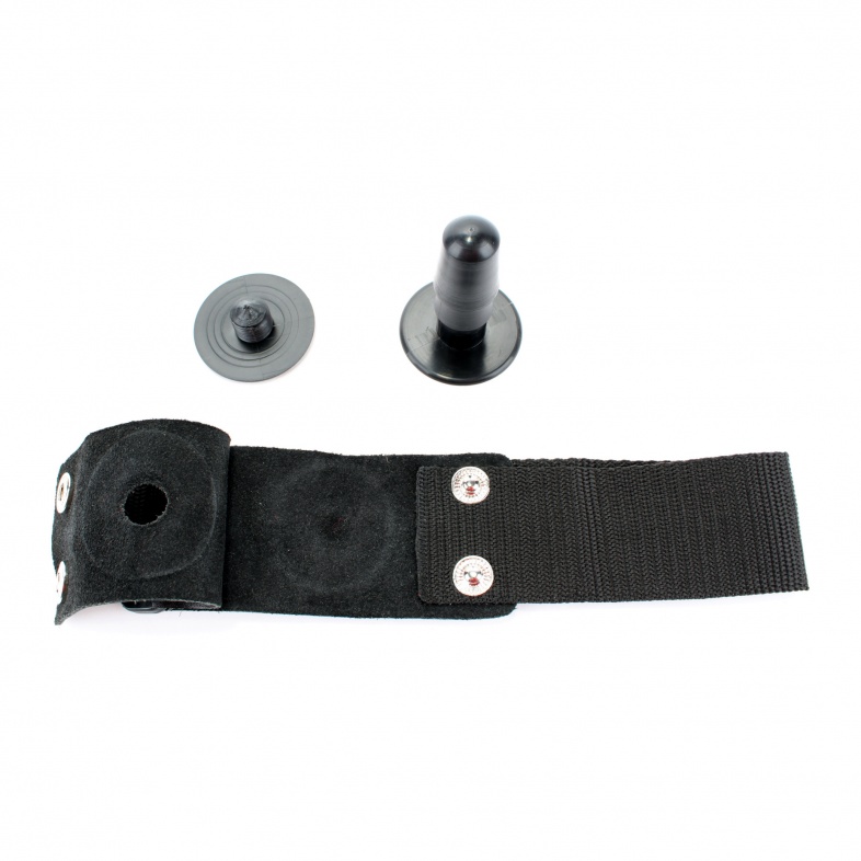 Аксессуар выполнен из черной натуральной кожи спереди и ранцевой ленты на липучке, фиксируется на бедро. Ширина ленты 5см. Подойдет на обхват от 38 до 50см.Штырек Харнес надежно крепится на кожаную подложку кнопками.