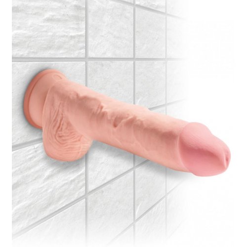Большой фаллос с мошонкой на присоске King Cock Plus Triple Density 28 см