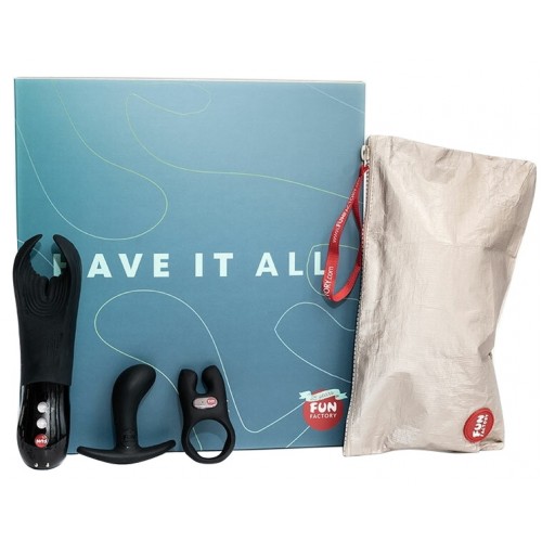 Набор игрушек для взрослых Fun Factory включает в себя три классных девайса для мужского и парного удовольствия: вибратор-мастурбатор Manta Black, эрекционное кольцо NOS Black, анальная пробка Bootie Small Black.