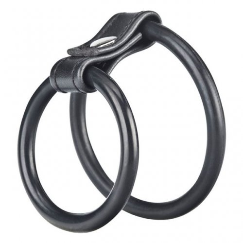 Два эрекционных кольца соединенные ремешком из искусственной кожи. Большее кольцо служит для утяжки пениса с мошонкой, меньшее отдельно для пениса.