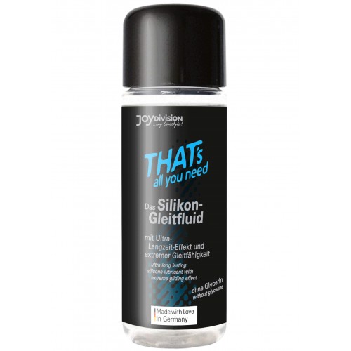 Лубрикант на силиконовой основе That's All you Need - это лубрикант, который удачно сочетает в себе все лучшие качества. Наносится заметно быстрее, благодаря чему он хорошо подходит для использования вместе с секс-игрушками.