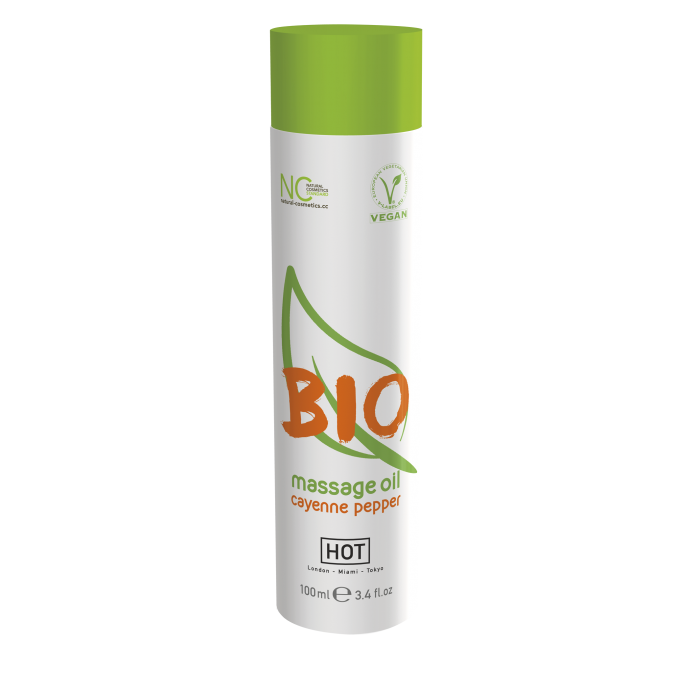 Пробуждающее массажное масло BIO с кайенским перцем. Произведено на основе кокосового масла с добавлением экстракта стручкового перца, также содержит масло оливы, жожоба, сок алоэ веры, масло миндаля и розмарин. Биологическое массажное масло подходит для использования веганами, более 80 % производства контролируется сообществом по использованию экологически чистых продуктов. Эко-туба изготовлена из возобновляемого сырья.