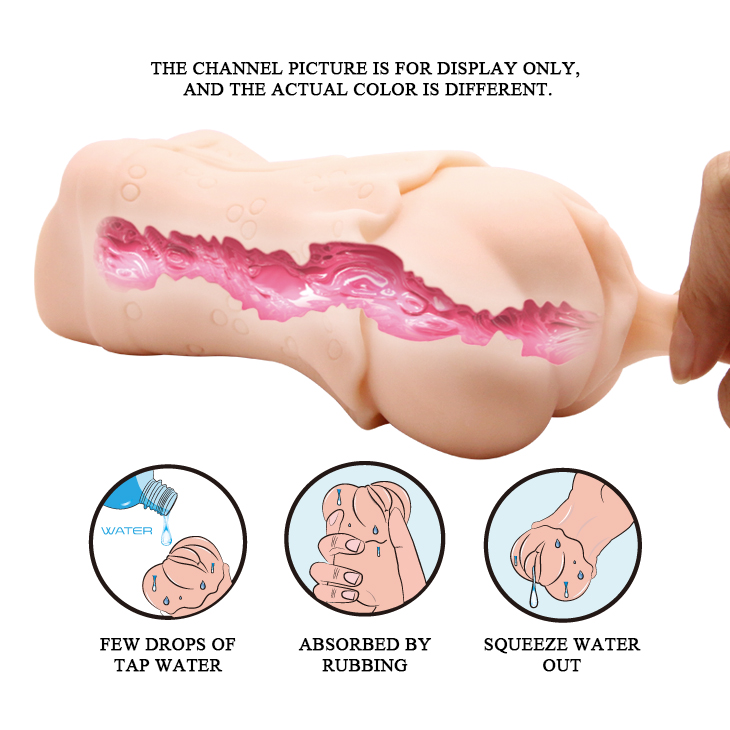 Особенность игрушки заключается в том, что при добавлении нескольких капель воды в тоннель мастурбатора, материал принимает консистенцию скользящей, увлажняющей смазки