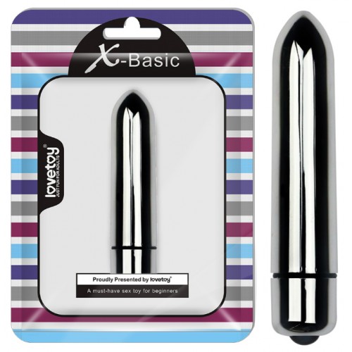 Серебристая вибропуля X-Basic Bullet Long Lovetoy с 10 режимами вибрации