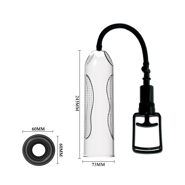 В комплекте: вакуумная помпа с ручным насосом, уплотнительное кольцо, уплотнительная насадка в форме вгины, вибро-яйцо с пультом управления, лубрикант.