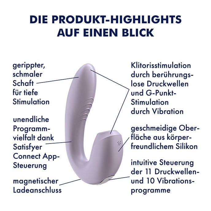 Кроме того, два мощных двигателя не только можно управлять индивидуально, подключившись к бесплатному приложению Satisfyer Connect, вы можете дополнительно создавать свои собственные вибрационные программы и, таким образом, испытывать максимальное индивидуальное удовольствие.