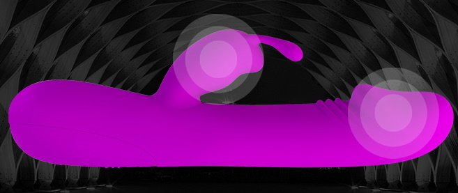 Вибратор снабжен двумя независимыми моторчиками: первый расположен в головке, второй - в отростке для стимуляции клитора.