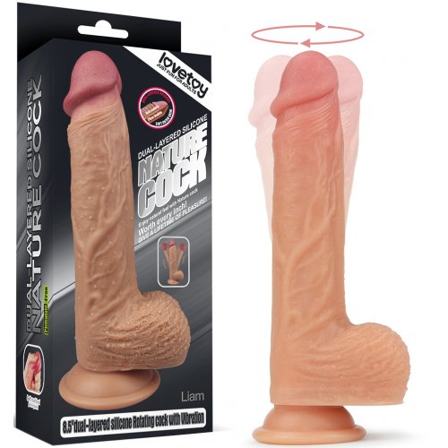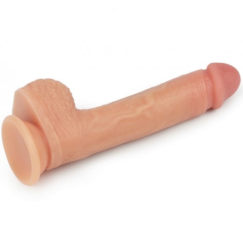 Реалистичный вибратор с ротацией на присоске с мошонкойи с функцией нагрева.Имеет 5 режимов вибрации и 5 режимов ротации.