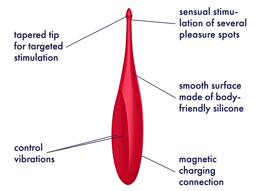 Twirling Fun обладает лаконичным дизайном, благодаря чему удобно лежит в руке, пока твердый, гладкий и немного изогнутый вибрирующий стержень прекрасно стимулирует эрогенные зоны. Девайс изготовлен из сверхмягкого, приятного для тела медицинского силикона, поэтому он мягкий на ощупь и легко скользит по коже — совершенно безопасен для использования.